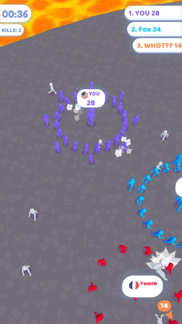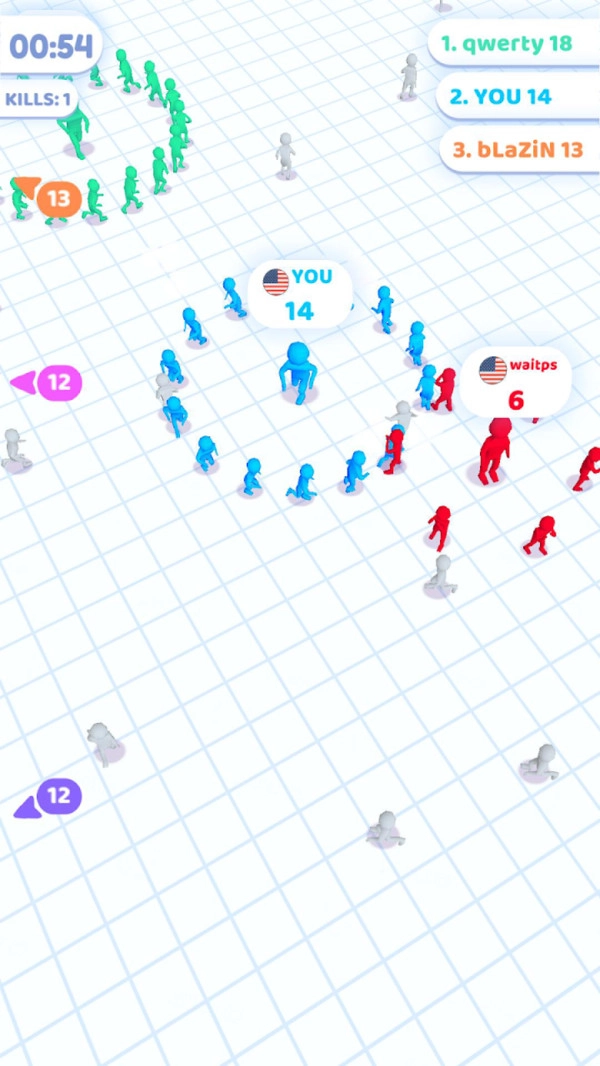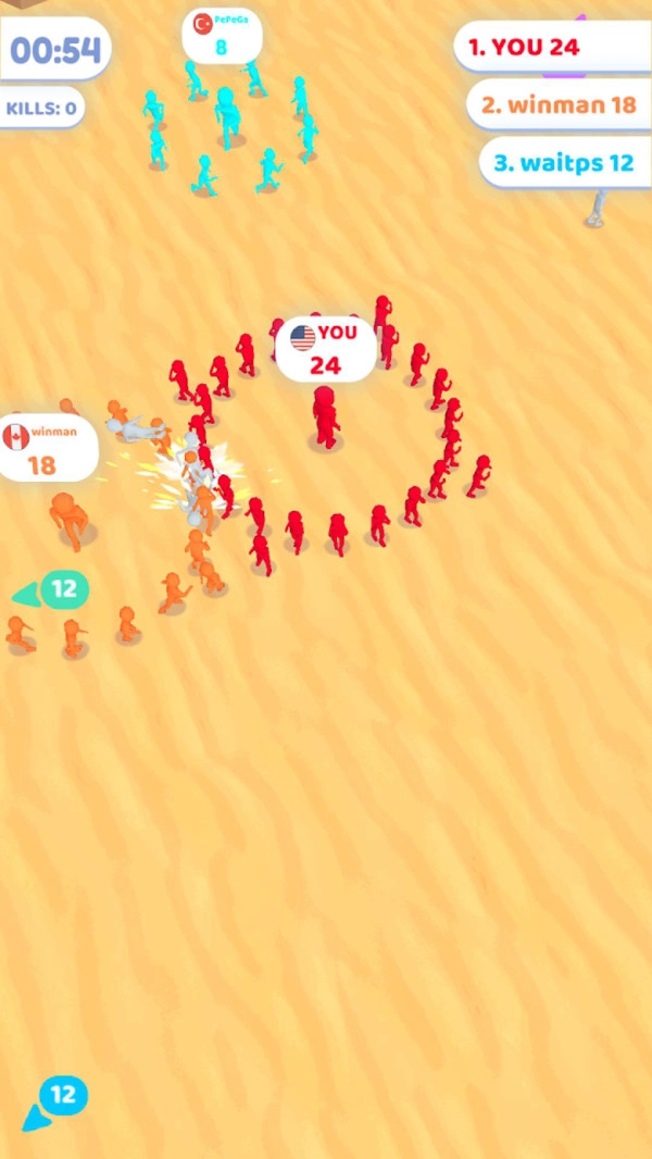 加入搞冲突是一款很有趣的休闲益智游戏,在游戏中玩家将会与其他的玩家一起竞技,玩法很像io类型,我们需要招募足够多的人来去其他的人群发生冲突,当然人越多,声势就会越大,更容易挑战成功,当然输了不要灰心,我们可以快速的回到战场重新投入战斗,还会有翻盘的机会,快来体验吧!