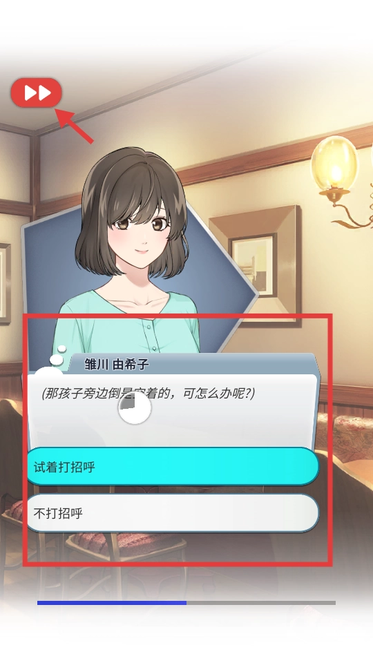 在过剧情时候会出现选择,如遇到有人旁边空位时,若想互动就选择试着打招呼,若不想则选不打招呼,不同选择会触发不同剧情。