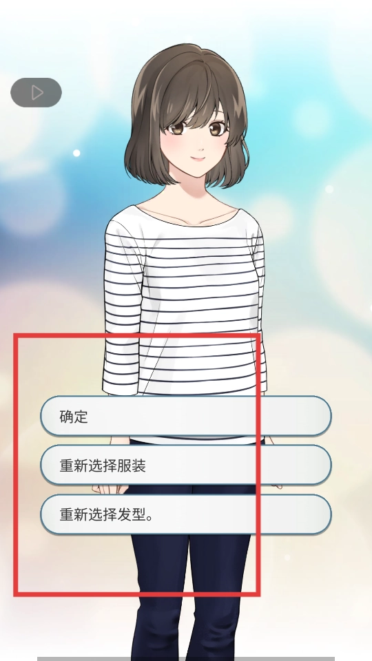 进入创建人物界面,若对当前服装或发型不满意,可点击重新选择服装或重新选择发型来调整,满意后点击确定即可。