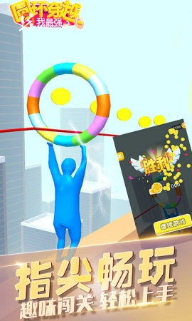 “圆环穿越”我最擅长的玩法超有意思,得把圆环高高举起来玩穿行,记得上下调整位置,这样才能跑得更远,玩起来真的很上瘾。