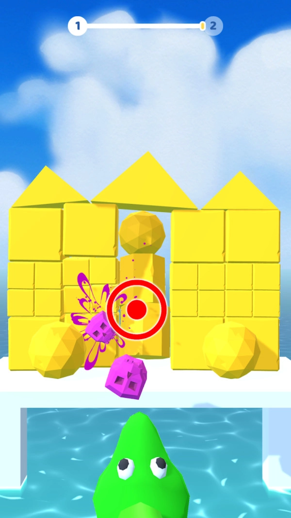 3、到了最后阶段,你会变得很大,能够瞄准城堡并发射子弹,把城堡摧毁掉。