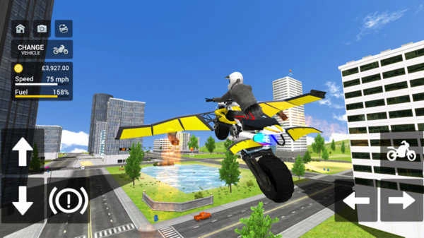 飞翔摩托模拟器是一款刺激好玩的赛车竞速游戏。玩家在游戏里能驾驶会飞的摩托车,在城市中自由穿梭。游戏里的摩托车种类丰富,还能自由改装,其中最关键的就是那对滑翔翼。你可以灵活切换摩托车的形态,实现随时随地起飞。要是喜欢这款游戏,可别错过啦。