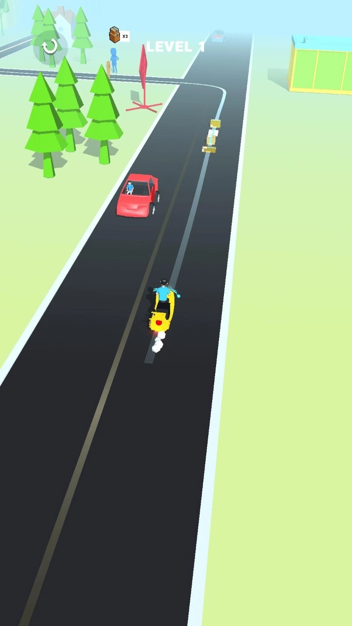 1、玩法十分简单,驾驶摩托车时会自动拾取快递,抵达指定地点即可获取金币;