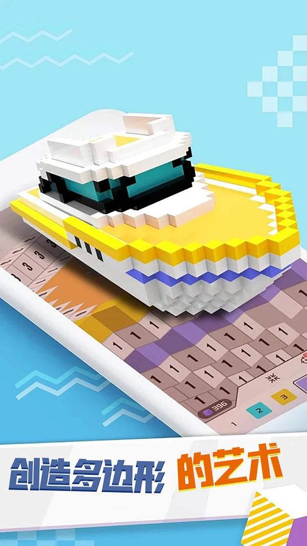 2、在这里你可以创作多边形艺术,再为其上色,过程十分减压,成品也美轮美奂。