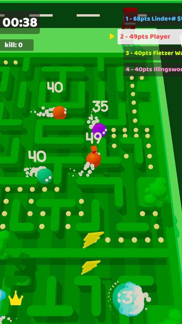 3.你可以在角色的头上看到所得分数,如果对方的分比你高,一定要远离他。