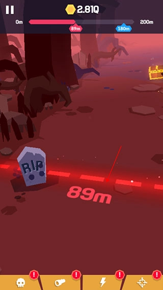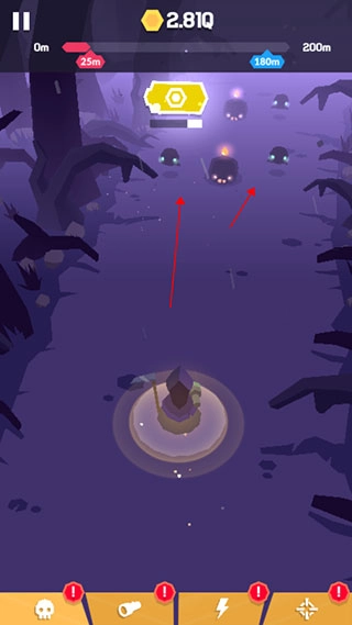 我们的目标是清除画面里的所有怪物,让自己能前进得更远;一旦被怪物碰到,游戏就宣告结束,此时会统计你本次冒险所到达的距离。