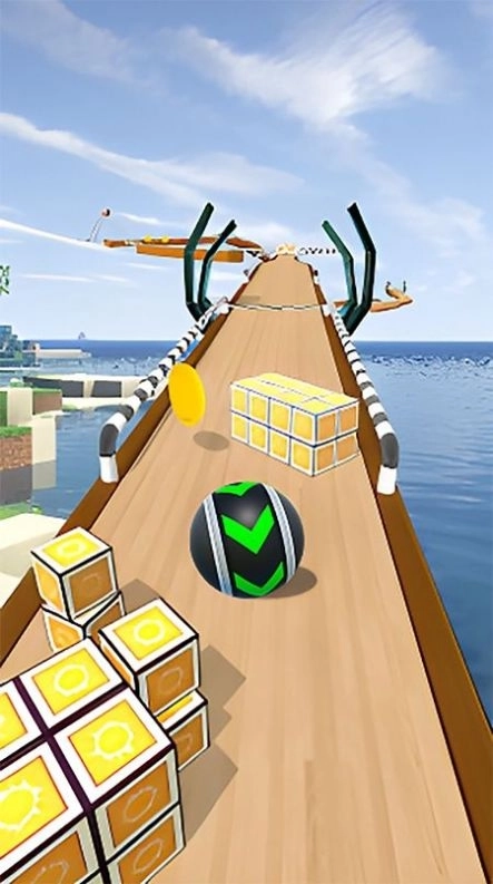 1)收集道具可以提升分数并让球形角色加速,玩家可借助这些道具去冲击更高的分数与更快的速度。