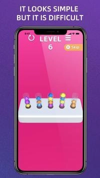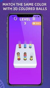 2.这是一款简单易上手的益智游戏,适合各个年龄段的玩家。它和常见的益智游戏类似,核心玩法是通过排序操作来对不同颜色进行归类整理。