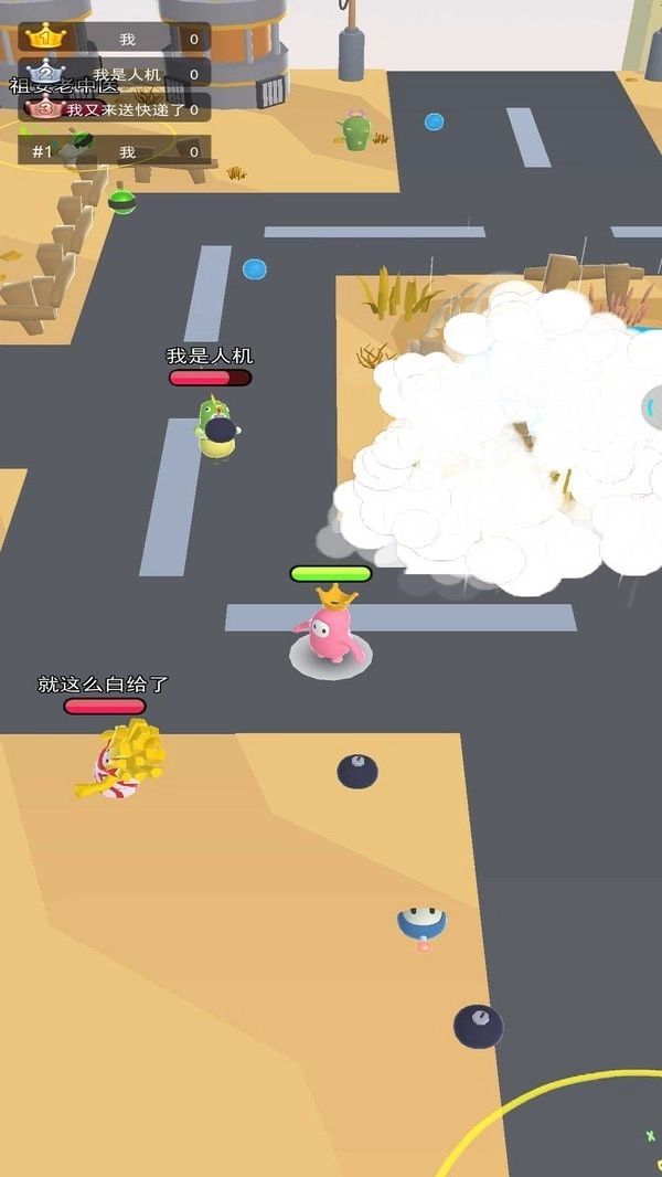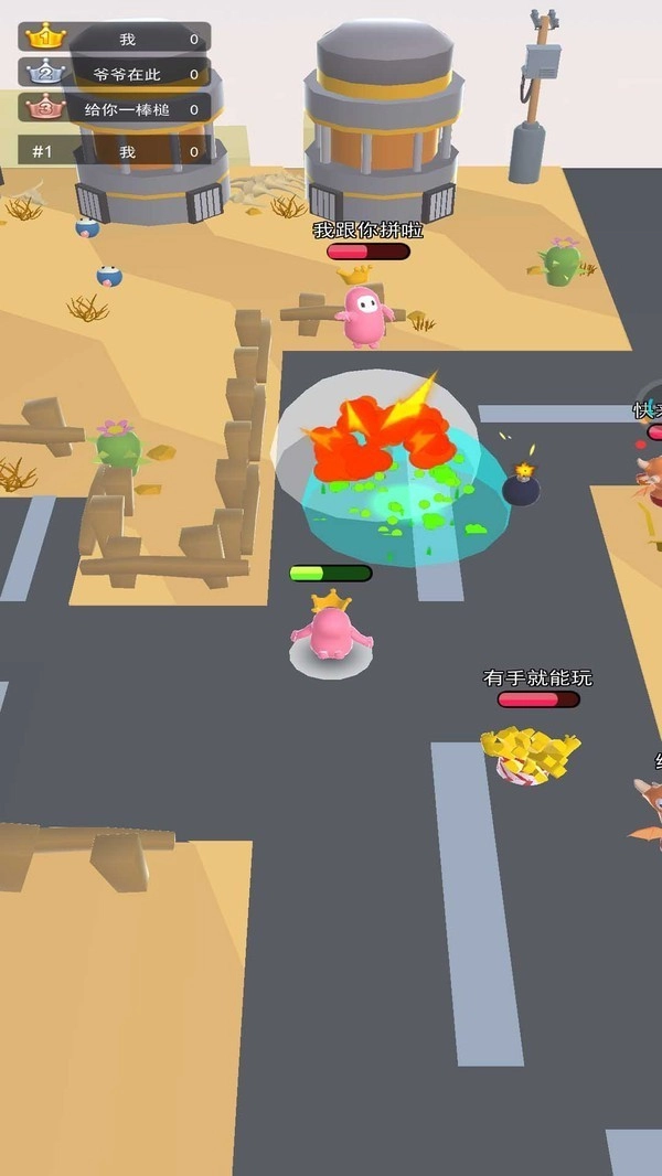 3,在游戏中控制角色不断拿出手中的炸弹,消灭场景中的每个对手,当只剩下一个人的时候赢,有各种场景可以解锁,轻松有趣的内容,玩法也是非常的解压!