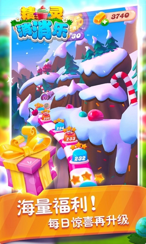 3、多种不同颜色的糖果能为玩家带来全新的挑战体验,游戏内玩法丰富多样,还有悦耳的音乐伴随整个闯关过程。