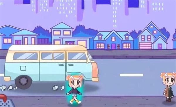 2、扮演触手怪操控一辆行驶在公路上的面包车,任务是将沿途经过的路人抓进车里。路人出现时会带有光圈特效,需要找准恰当的时机将他们抓住。
