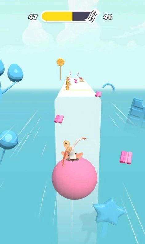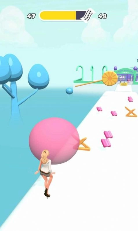 2、这里有各种各样的泡泡糖供你吹,赶紧把泡泡糖吹大,然后沿着路往前走,要小心别碰到障碍物哦。