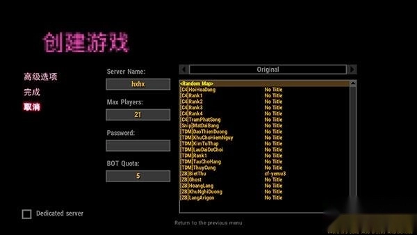 4、随后进入【地图选择】界面,右侧为可供挑选的地图列表,首行显示的是随机地图,选定该地图后,点击【完成】按钮即可。