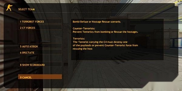 6、进入地图前,我们还需【选择阵营】,左侧菜单栏的前两个选项分别对应T阵营与CT阵营,也就是大家常说的匪和警。