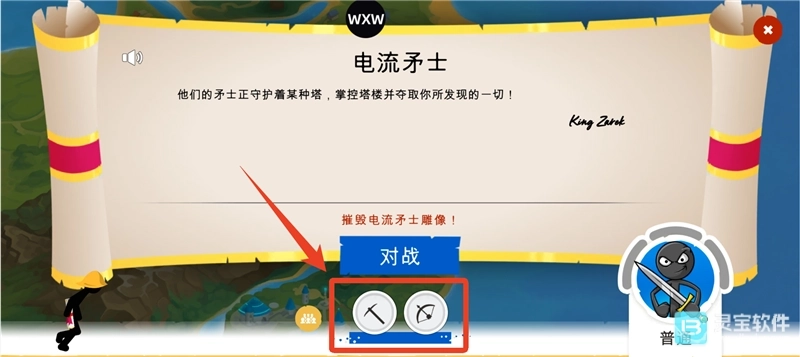 4、点击后就能看到该关卡的介绍,点击下方那一排圆圈,即可更换兵种、法术等卡牌。