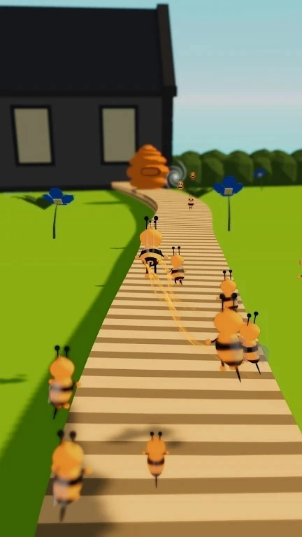 3、带领小蜜蜂回巢时,会出现一条长长的通道。收集的小蜜蜂数量越多,在通道中前进的距离就越远,能获得的奖励也会相应增加。