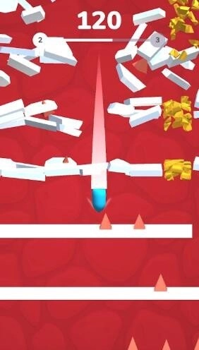 2、如果连续不接触平台,就能发动冲刺技能,此时就会疯狂起来,将所有挡在你面前的障碍突破并粉碎。