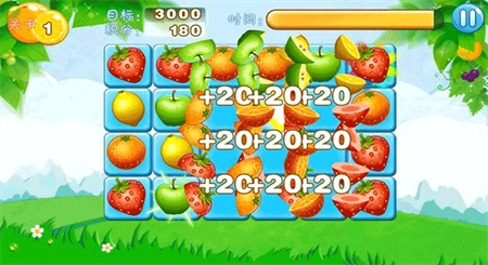 3、玩法简单,只要连接3个或3个以上相同的水果就能获得分数。
