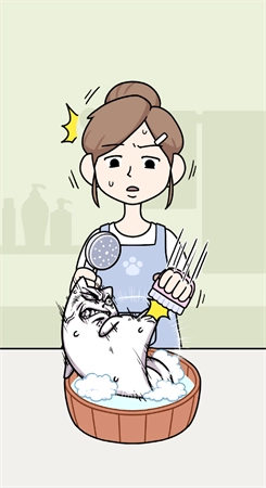3、这里为你呈现有趣的洗澡场景,让你体验一番给猫咪洗澡的满满乐趣,十分畅快。