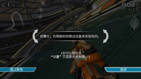 2、可通过左右倾斜移动设备完成转向操作,若有需要,也能在设置页面调整控制器类型。
