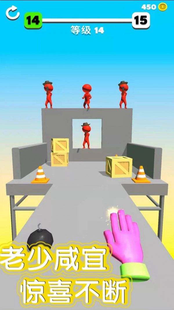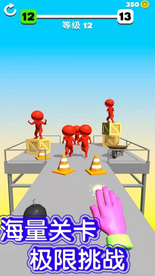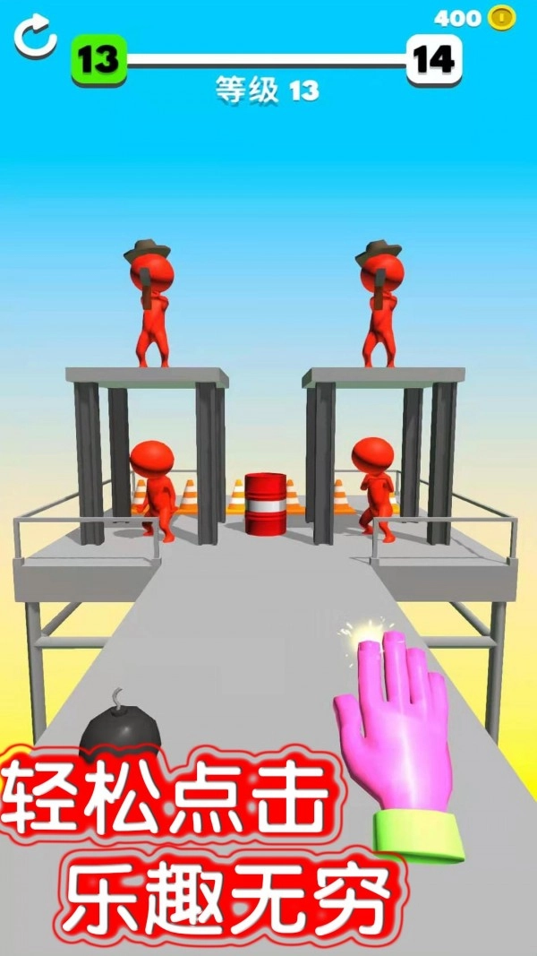 1、这里有各种各样轻松有趣的关卡供你体验,你还可以借助爆炸桶把所有敌人都击飞;