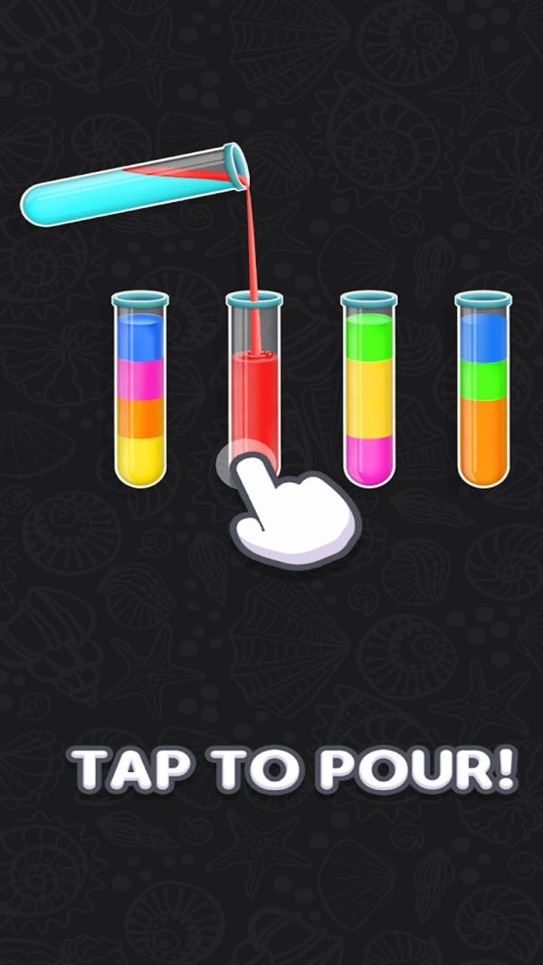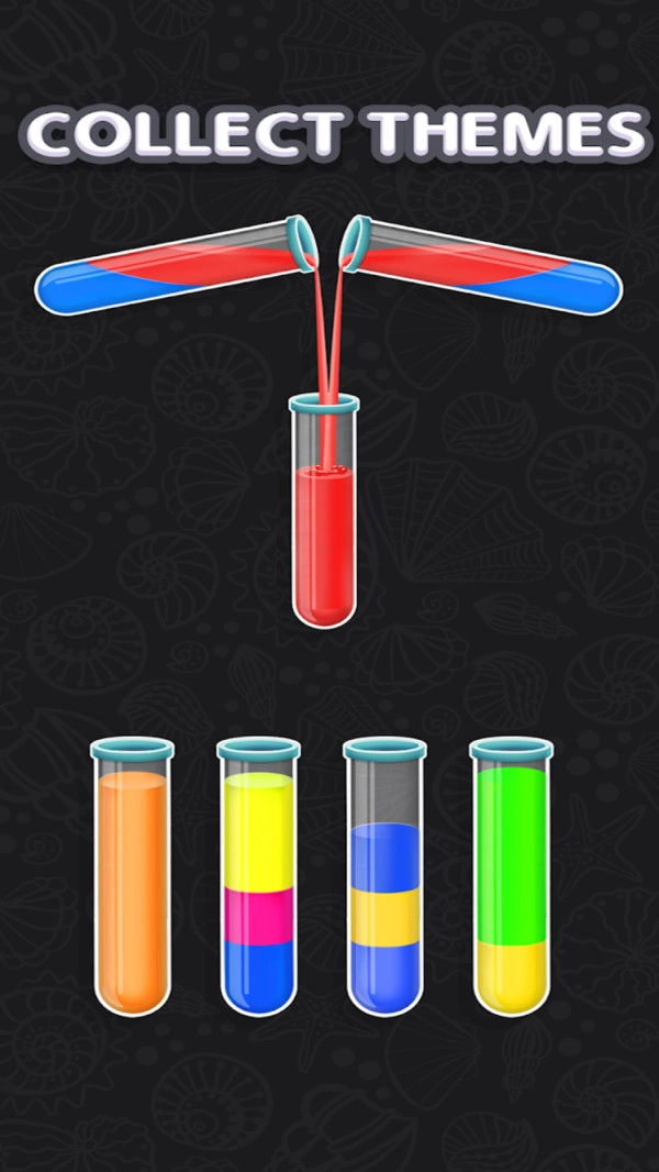 3、每个试管里装有不同颜色的水,你需要把这些水区分开,就能得到游戏奖励。
