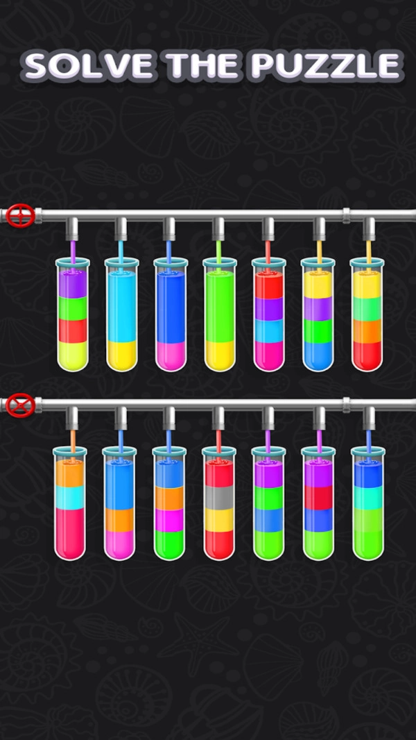 2、这些水有着不同的颜色,你得把所有的水都成功分类才能通关。