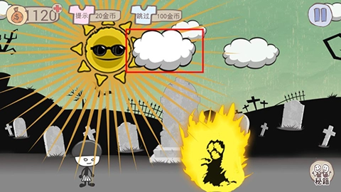 这一关需要在鬼魂抓到史小坑之前,把他头上的云拨开,还真有拨云见日的意味。这样就能顺利过关了。
