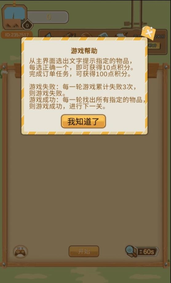 3、沉浸其中,有限时间内,完成找寻物品的任务。