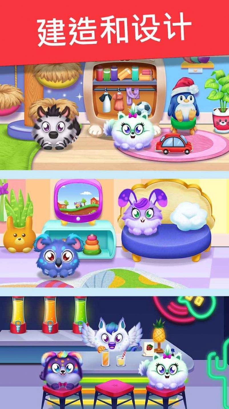 2、精致的卡通游戏世界,以不同的方式装扮,搭配精致的细节;