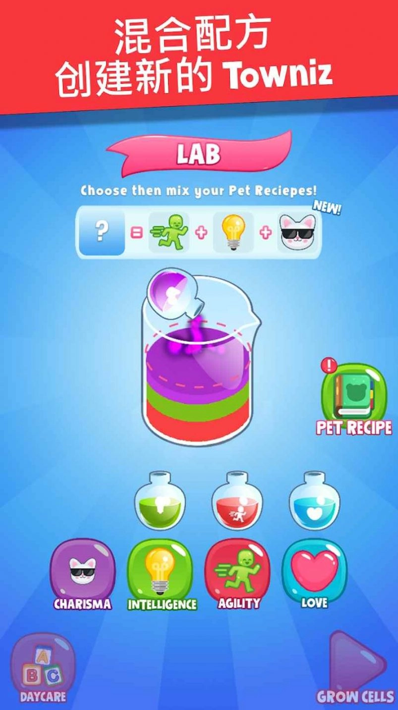 1、选择药液,查看药方,将会有一个意外的蛋,然后再将其孵出,看你会有怎样的宠物;