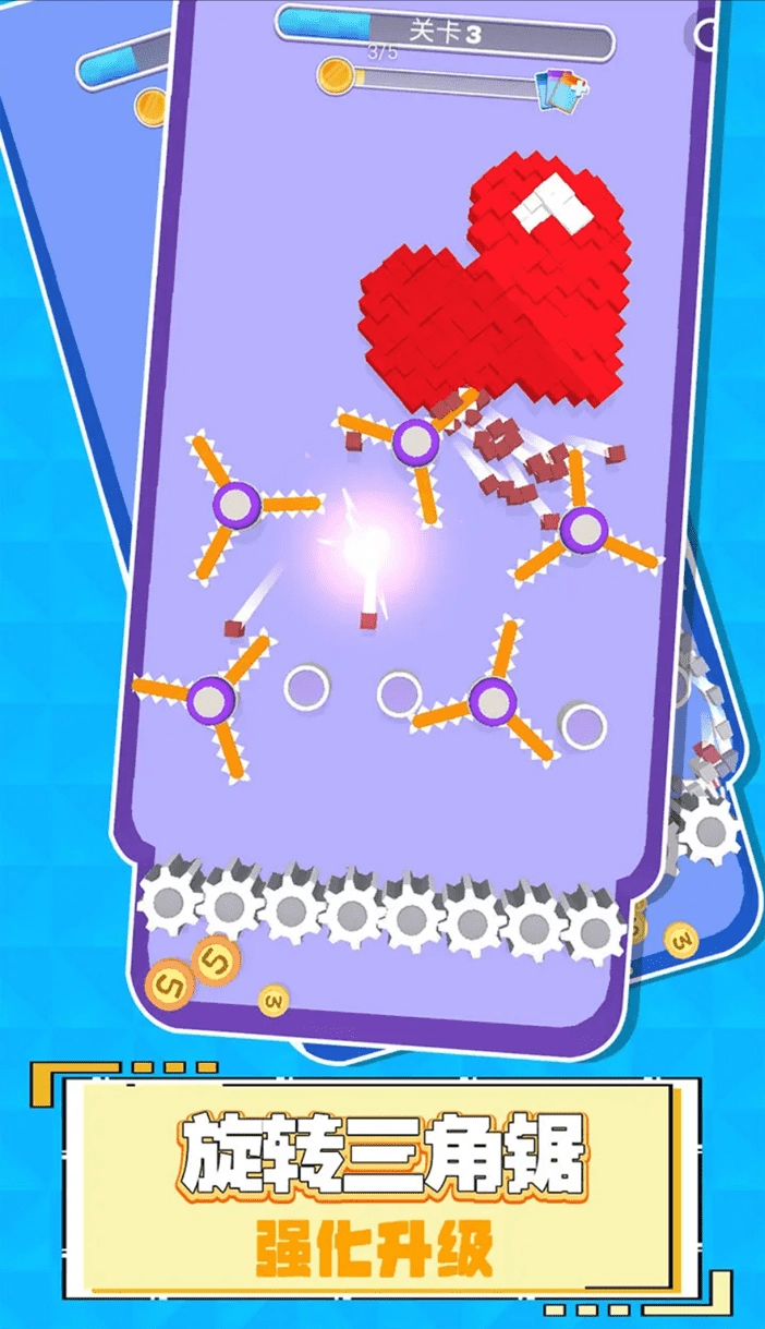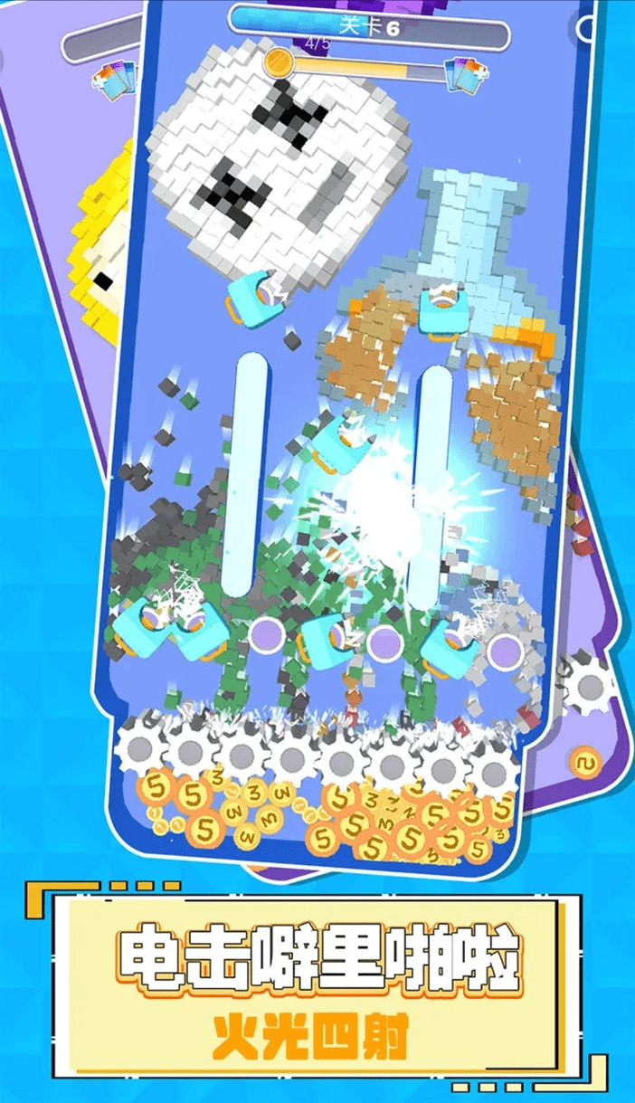 4、像素世界拆迁队已正式集结出发!快升级你那锋利的小齿轮,把所有那些可爱Q萌的像素小方块都粉碎掉吧。