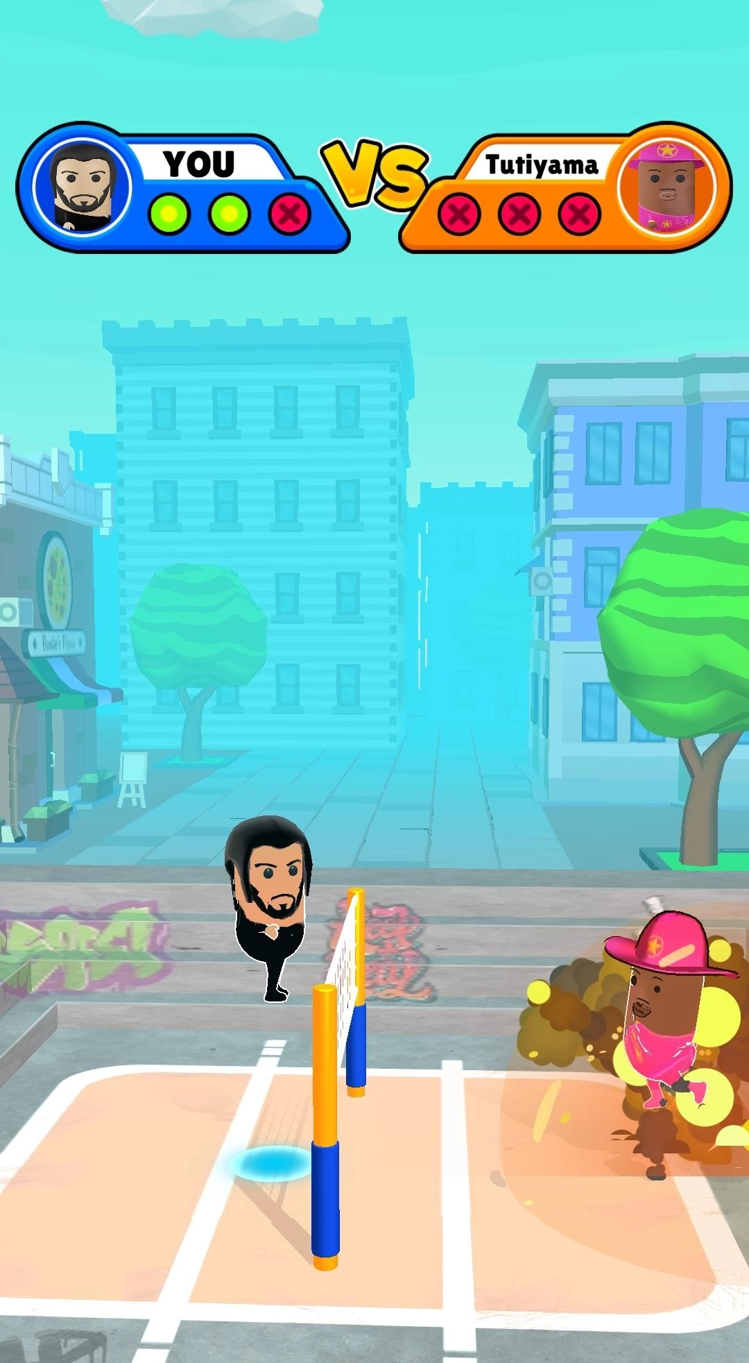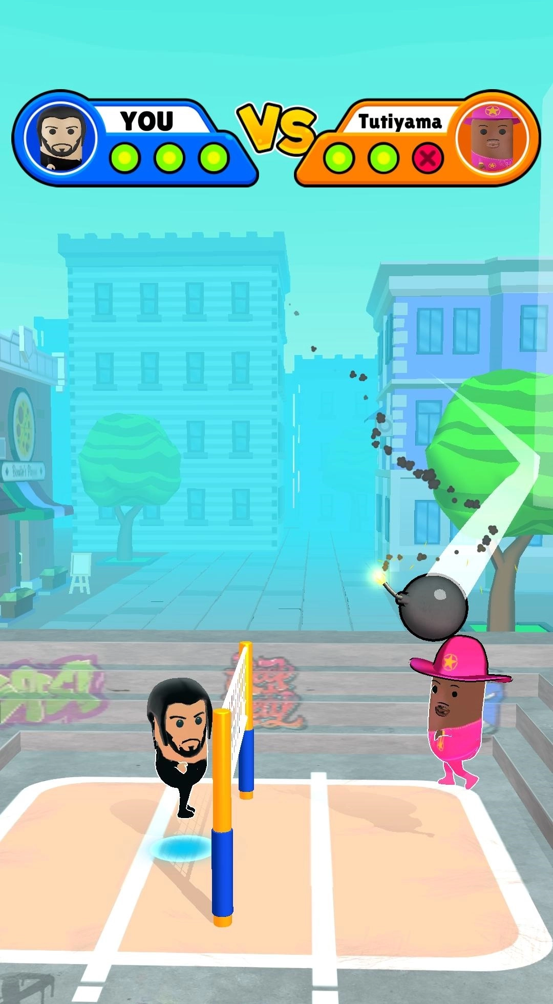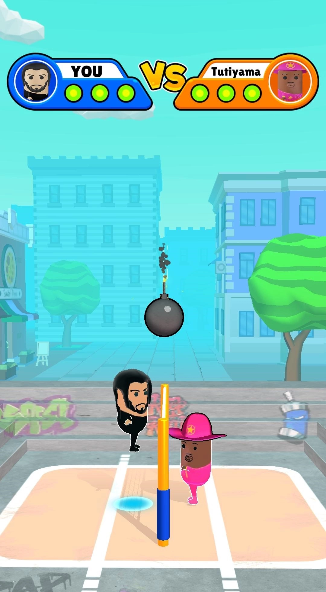 是一款用炸弹当排球的对抗竞技游戏,游戏规则和排球一样,采用三分制,把炸弹打到对方的区域,并且落到地面上让炸弹爆炸才能得分,玩家不但要精准的接到炸弹,还要把炸弹打回去,同时还要避免被炸弹炸到,让游戏更加紧张刺激。如果你不想被炸弹炸到就做好最强的防守和进攻。