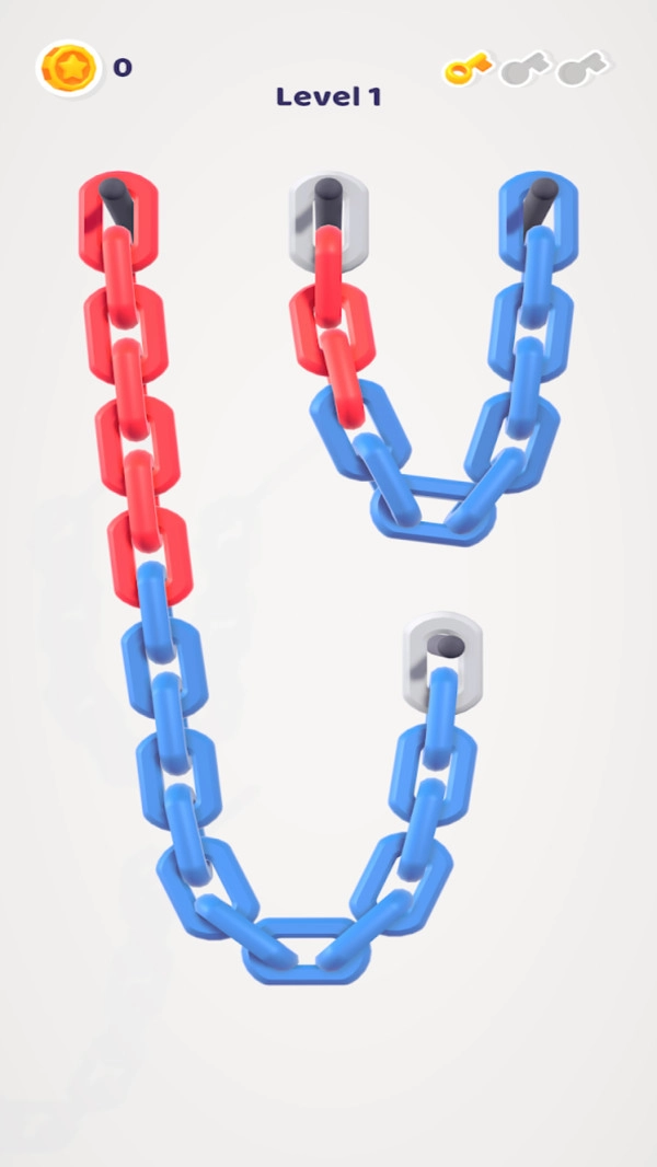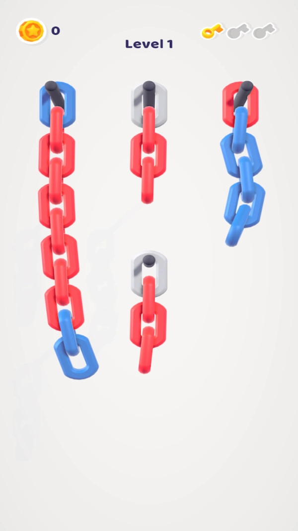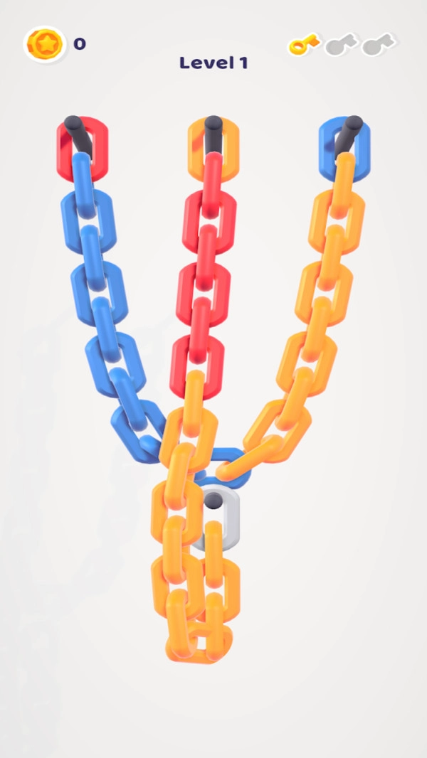 排序游戏最近很流行的玩法,锁链排序就是其中之一。不过,这款锁链排序游戏还是很新奇的。链条根据颜色重新排序。不同颜色的链条应该分开,然后连接到相同颜色的链条上。你可以多次尝试改变自己的位置,达到最终完美的分类效果。