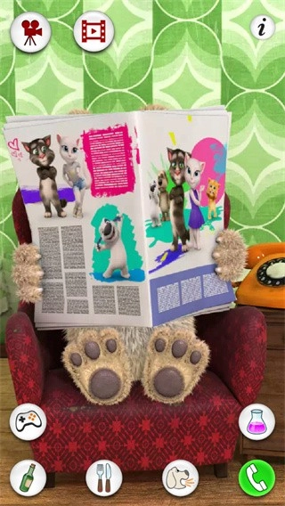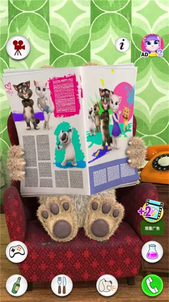 2、打开游戏后,用手指点一下本正在看的报纸,他就会把报纸合上,接着你就能和本聊天了,他会重复你说的话。