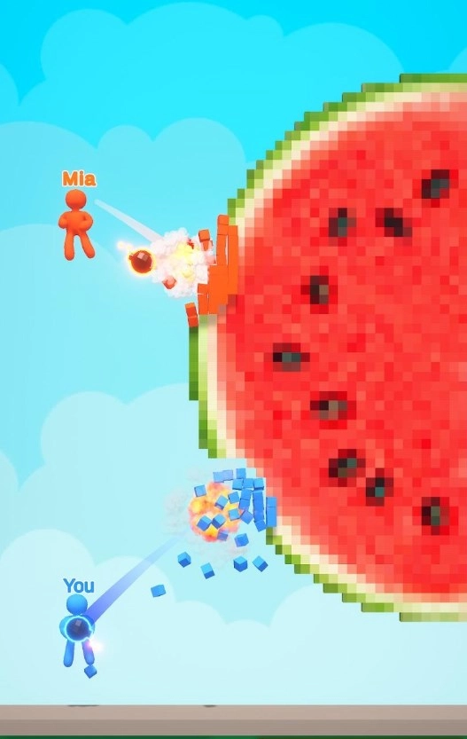 1、投掷手中的炸弹进行摧毁,只有用最快的速度引爆更多的像素块才能超过对手。