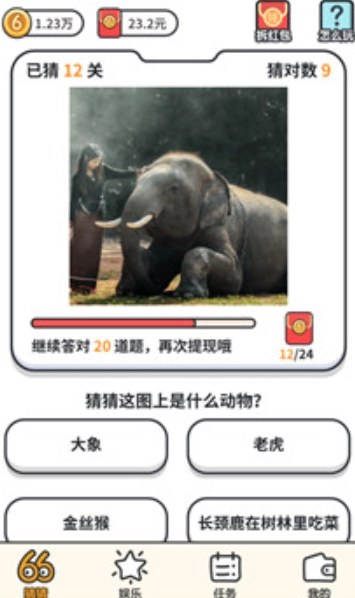 2、在一个欢乐的背景音乐下猜图,猜对的题目越多,那么你可以得到的奖励也会越多一些。