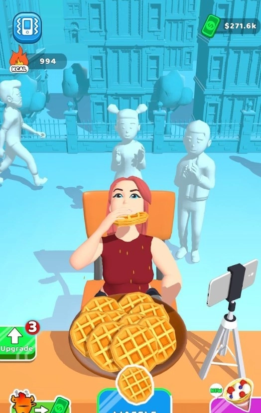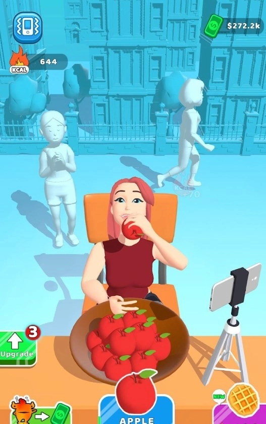 这款游戏有着轻松有趣的休闲玩法,玩起来没有任何的压力,随时随地都能够上玩,进行点点的食物吞噬,简单的操作方式即使是新手玩家也能畅玩,加入到更多的挑战之中,享受有趣的大胃王挑战,逐渐成为最知名的吃播吧。点击左下角的绿色按钮就可以对部分的属性进行提升,简单好玩,体验吃播赚钱的玩法。