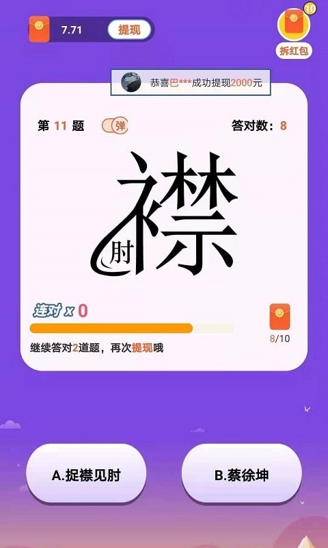 4、让玩家沉浸在答题闯关的乐趣之中,并且游戏随着关卡的推进还能够领取到现金红包的奖励。