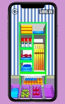 衣柜组织填充排序3D这是一款休闲闯关类游戏,游戏里你需要将所有的物品全部放入到衣柜里,游戏里超多关卡等你挑战哦,衣柜组织填充排序3D采用了卡通的画风,游戏里超多精心设计的关卡等你挑战哦,游戏里利用道具给你前所未有的体验哦,喜欢的快来吧!