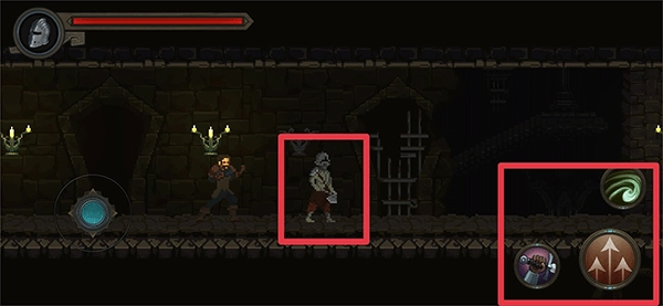 2、接下来你可以操控角色一路向前行进,碰到敌人时借助攻击按钮把他们消灭。