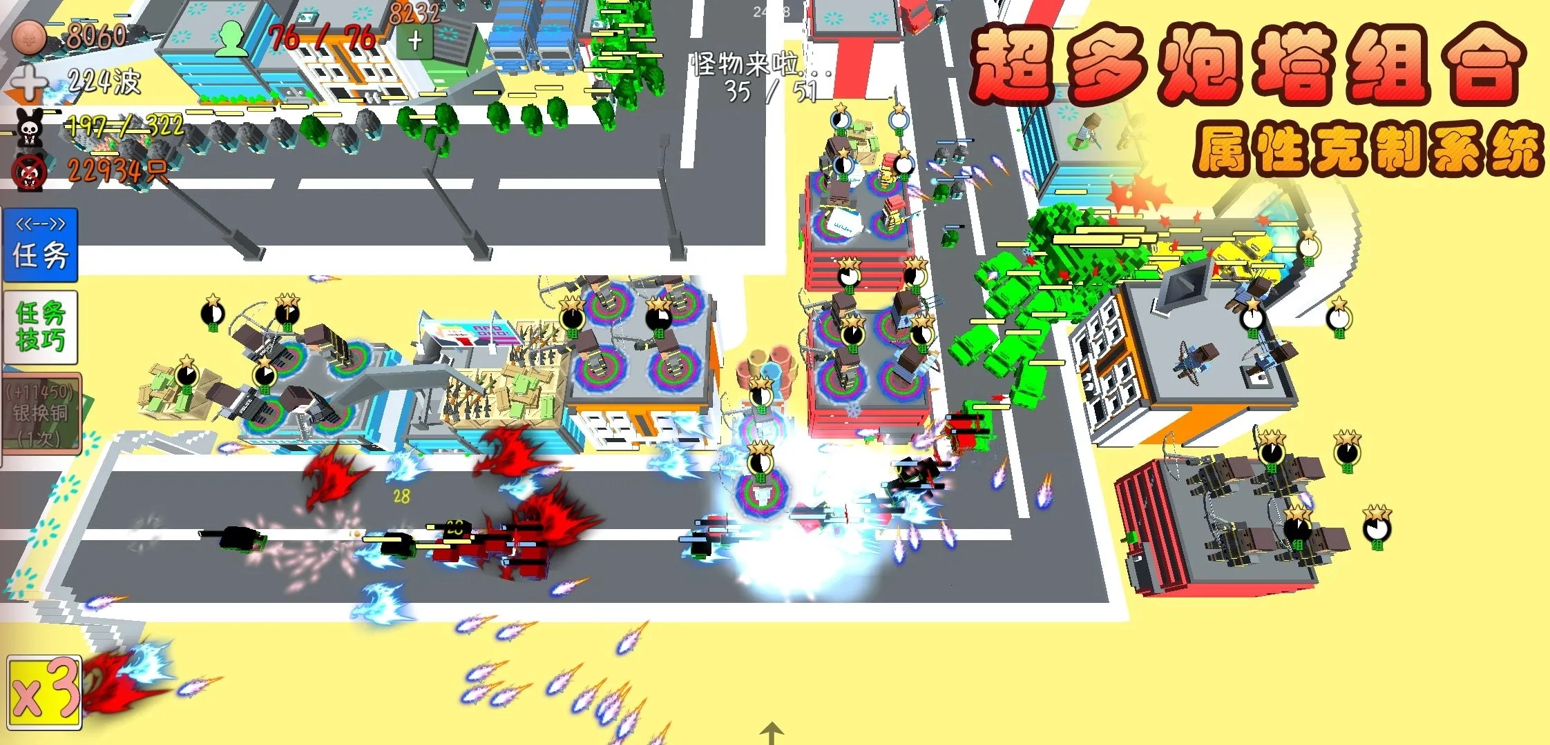 2、每一次防御都是你前进的动力,而大量的金币则是你成功的筹码