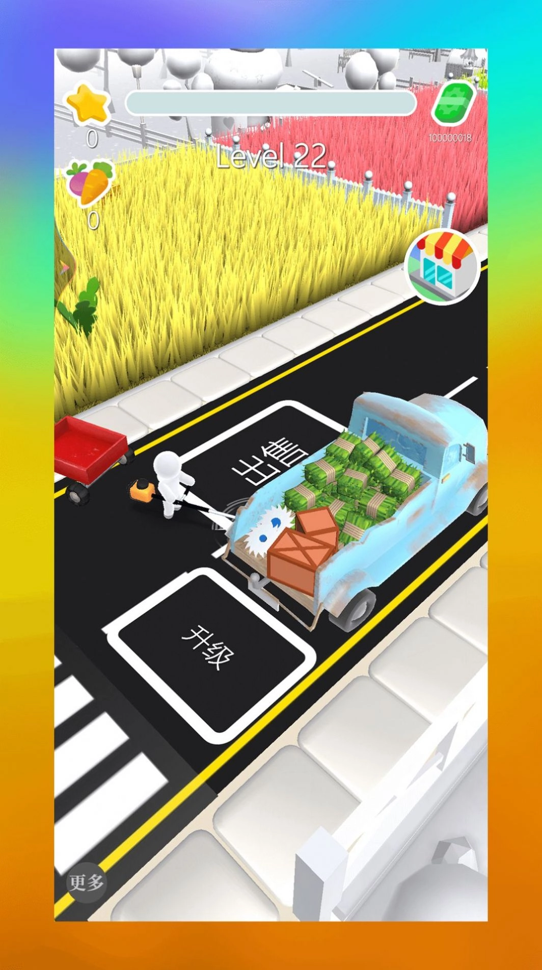 4、收割一块块土地,获得金钱,升级你的武器和割草机,前往更富有的地块。