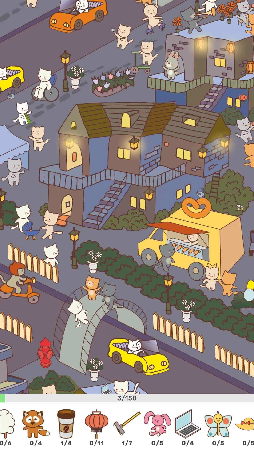 这是一款极具可玩性的休闲游戏。在游戏里,玩家要操控自己的角色,在一座遍布可爱猫咪的城市中搜寻各类物品。这是一项有趣的挑战,唯有通过细致的观察,才能找到所需物品,轻松收获满满的乐趣。可爱的卡通游戏画面搭配清新靓丽的设计风格,让玩家能尽情沉浸在游戏的欢乐之中。精美的艺术画面还能带来独特的视觉享受,更有众多趣味挑战等待体验,可千万别错过哦。