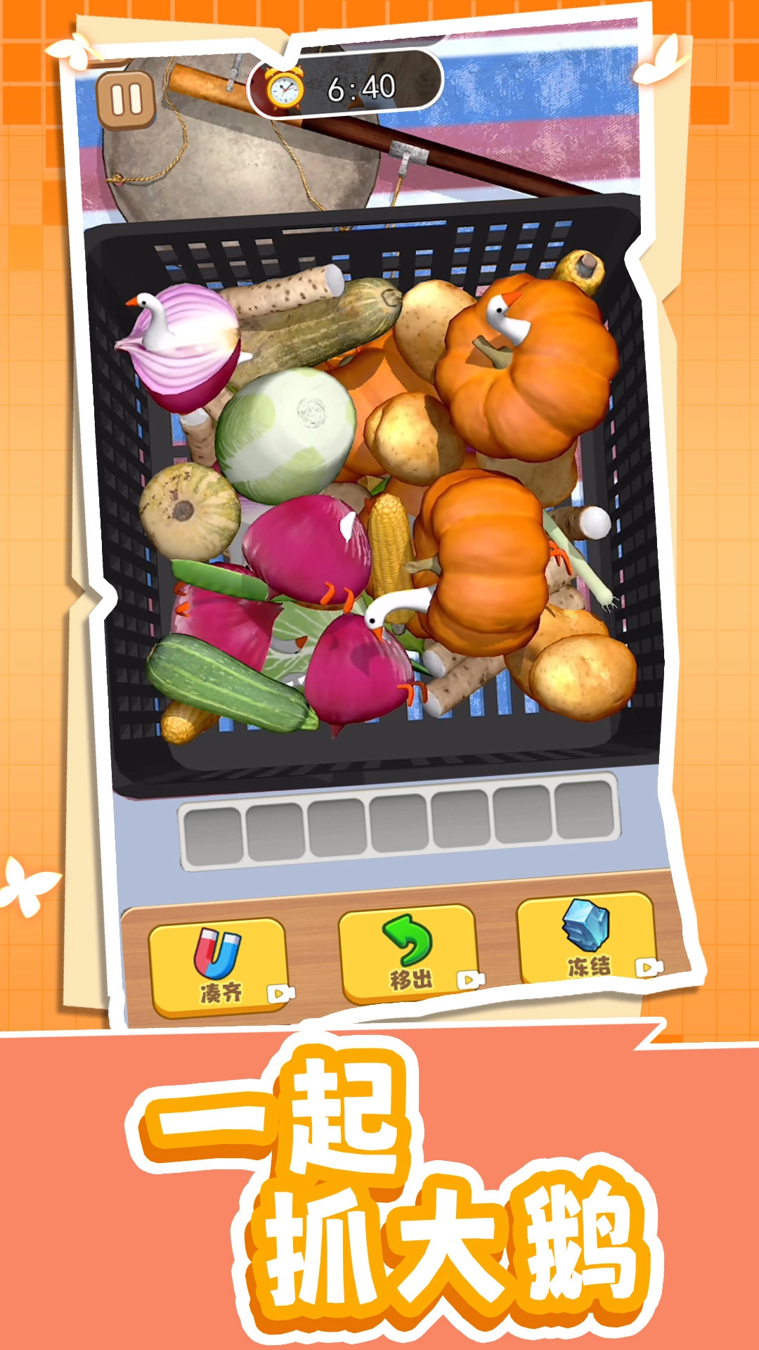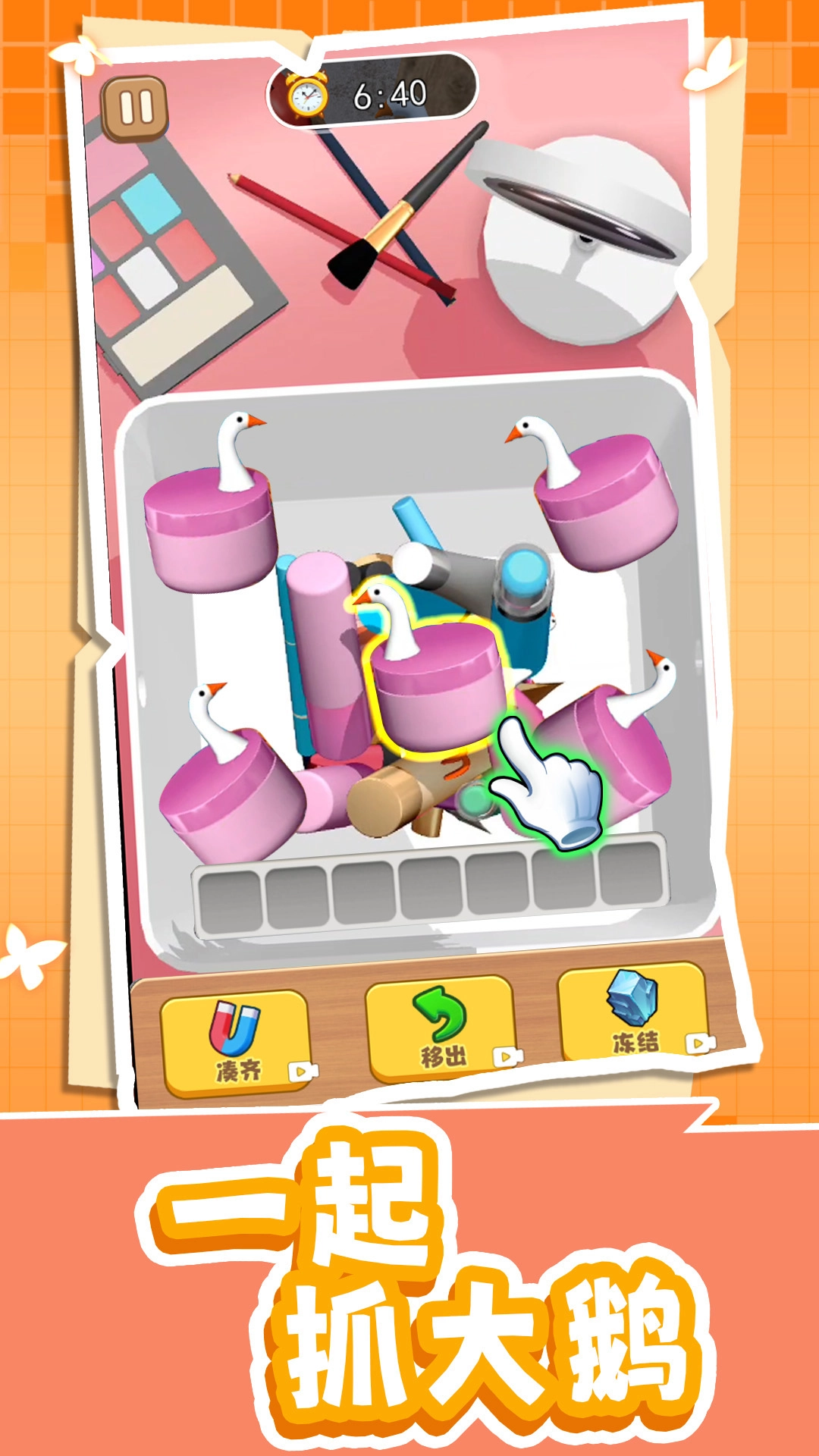 一起抓大鹅:这是一款有趣的休闲益智消除闯关游戏,每天都会更新不同主题,解锁所有道具能助你更顺利闯关。操作方式简单,点击即可收集并消除所有物品,完成全部任务。这是一款简单易上手的小游戏,感兴趣的话不妨试试吧。
