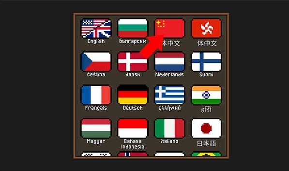 2、如果此时不小心选到了其他语言,那么在进入游戏后可以点击右下角的上箭头按钮