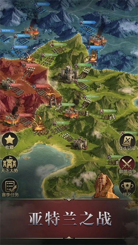 社交互动方面,这款游戏支持多人在线协作与竞争玩法,玩家能加入联盟,和其他玩家结盟或者宣战,携手完成征服世界的目标。