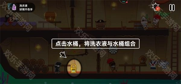 5、按照提示点击水桶,将洗衣液倒入水桶里面。