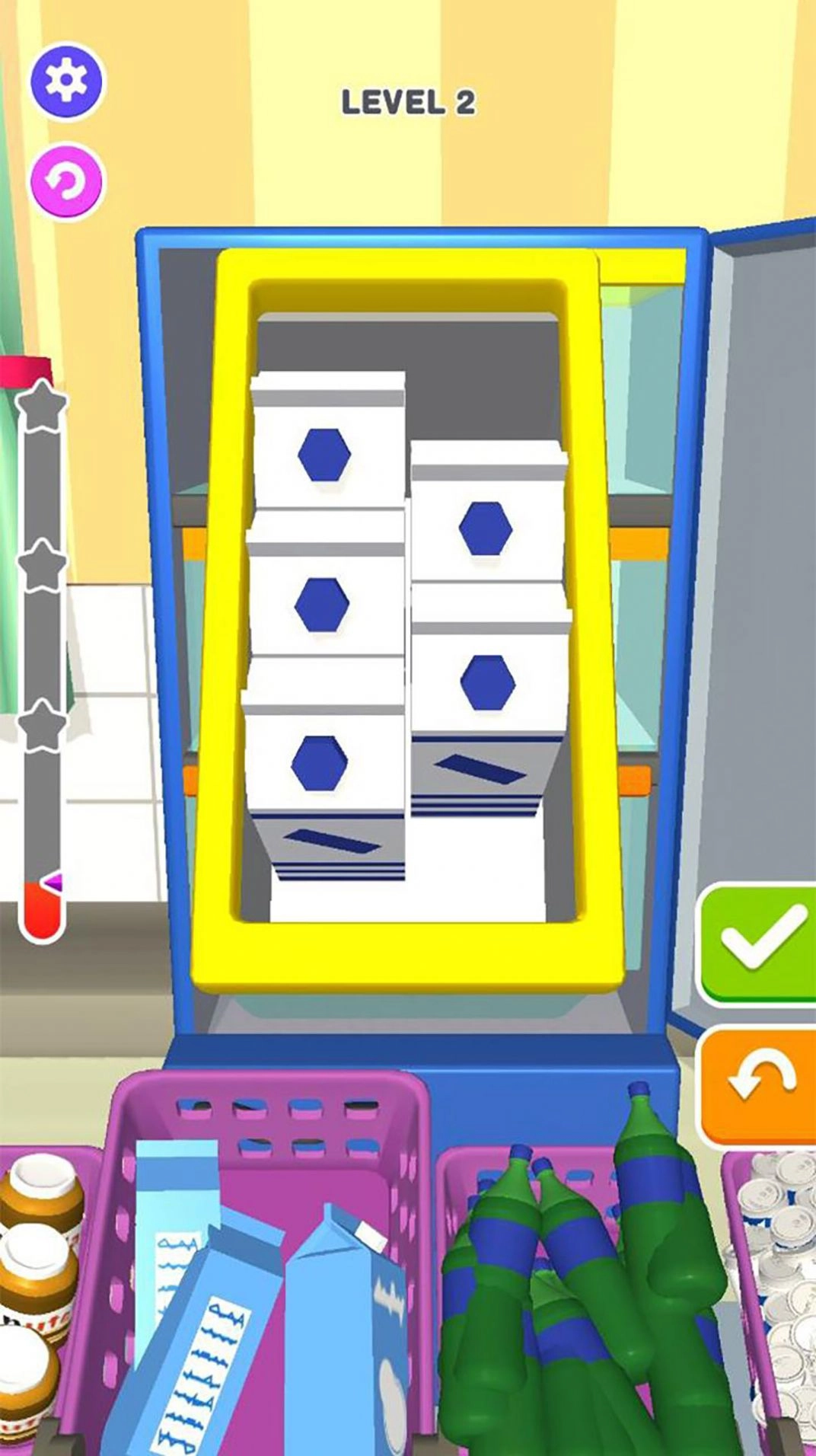 2、你得在规定时间内把各类美味佳肴收纳进冰箱,手速与判断力至关重要。