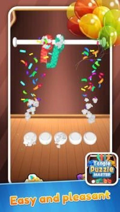一款需要动脑筋解开绳结的解谜游戏,游戏里有好多绳索相互缠绕着。